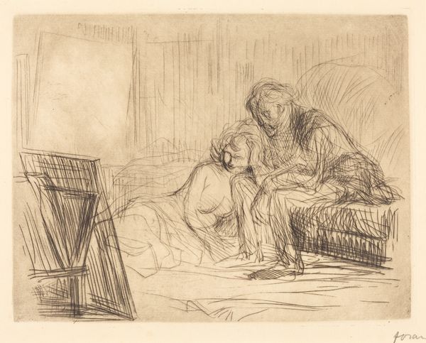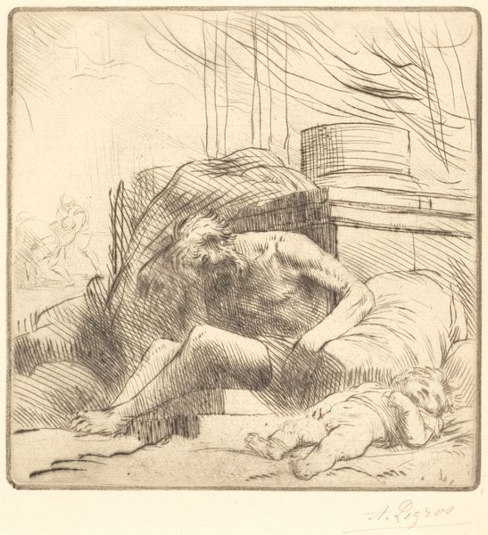 This evocative sketch was made by Wilhelm Trübner, and it captures a young man in a drunken stupor, watched over by two loyal dogs. The presence of these canines, the traditional symbol of fidelity and guardianship, offers a poignant contrast to the youth’s disheveled state. Consider the image of watchful animals, echoing through the ages from ancient Egyptian depictions of jackals guarding tombs, to the mythical Cerberus at the gates of the underworld. Here, these dogs serve as a silent vigil, perhaps hinting at a deeper moral commentary on self-control and the consequences of excess. The image of the loyal dog transcends cultures and millennia, consistently embodying protection and fidelity. There's something deeply touching in how Trübner portrays these animals—their presence evokes a sense of primal connection, a silent promise of care that resonates across the ages. It touches something profound in our collective psyche, a reminder of the enduring bond between humans and animals, and of the comfort we seek in companionship. The motif of the faithful animal continues to evolve, resurfacing through time, carrying nuanced meanings that reflect our ever-changing relationship with the natural world.