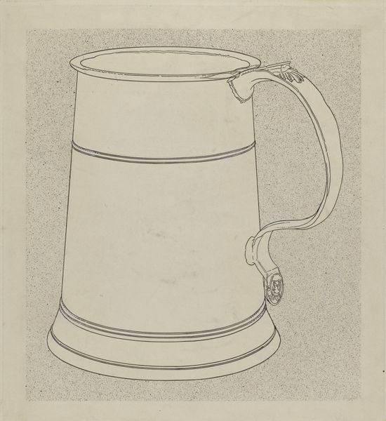 Lawrence Flynn made this drawing of a silver tankard with what looks like a simple pen or marker, focusing on the object's form and outline. It reminds us that even technical drawings can be beautiful in their own right. The drawing is spare and minimal; the handle is like a lovely, attenuated flourish that breaks up all the straight lines and right angles, softening the tankard’s rigid geometry. I wonder about the weight of the object and how its materiality would feel in the hand. The contrast between the anticipated density and the lightness of Flynn’s drawing makes me think about the nature of representation itself. Flynn’s approach echoes that of artists like Agnes Martin, who used simple forms and lines to create subtle and meditative works. It’s like art is a conversation that spans generations, with each artist adding their unique voice to the mix.