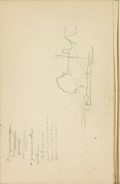 This is Cornelis Vreedenburgh’s pencil sketch, possibly of a boat, now at the Rijksmuseum. The drawing captures a moment of fleeting observation through minimal lines. Vreedenburgh destabilizes the established conventions of maritime representation by stripping the subject down to its bare essentials. The composition is sparse, with a few lines suggesting the boat's structure and sails, evoking a sense of openness. The artist employs a semiotic system, where each line functions as a signifier, hinting at the form and movement of the boat. The use of pencil allows for a range of tonal variations, creating a subtle interplay of light and shadow. Ultimately, the drawing challenges fixed meanings and invites new ways of thinking about space and perception. It reflects broader artistic concerns related to abstraction and the reduction of form. The formal qualities of line and composition create a dialogue between representation and abstraction, encouraging viewers to engage with the artwork's underlying structure.