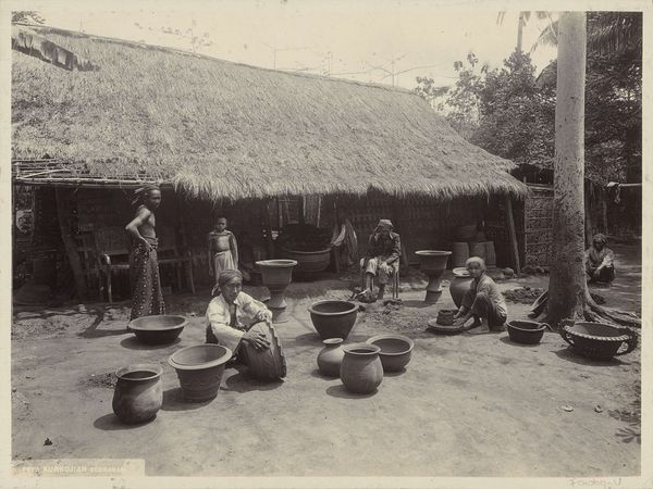 Editor: This gelatin silver print from 1871, "Tropical Scenery, Street, Chipigana" by John Moran, captures a row of houses with striking thatched roofs. The monochromatic palette and the almost documentary style gives it a sense of realism. What's interesting is its location in the Met collection. How do you interpret this work through a historical lens? Curator: That's a great starting point. What strikes me is the term “Tropical Scenery” itself. It tells us something about how Western audiences were encouraged to see these places at the time: as exotic and picturesque scenery, not necessarily complex social spaces. Given the context of the late 19th century, this photograph contributes to the larger discourse of colonialism and the Western gaze. Editor: So, the title frames our perception? Curator: Precisely. It also encourages us to consider the power dynamics at play. Who is taking the picture, and for what purpose? What does the photographer choose to include, and what is left out? Moran presents a view of Chipigana which likely reinforced pre-existing notions about the tropics for a European and American viewership. It's important to ask ourselves how such images were used to justify colonial ventures. Editor: That's a powerful perspective. It changes how I see the photograph; from a simple scene to a potentially loaded historical document. I never would have thought about it that way. Curator: Thinking about it that way pushes us to consider the implications and the historical circumstances in which such work was made, distributed, and interpreted by different publics. Editor: Thank you. It's like unlocking a whole new level of understanding by considering its social context.