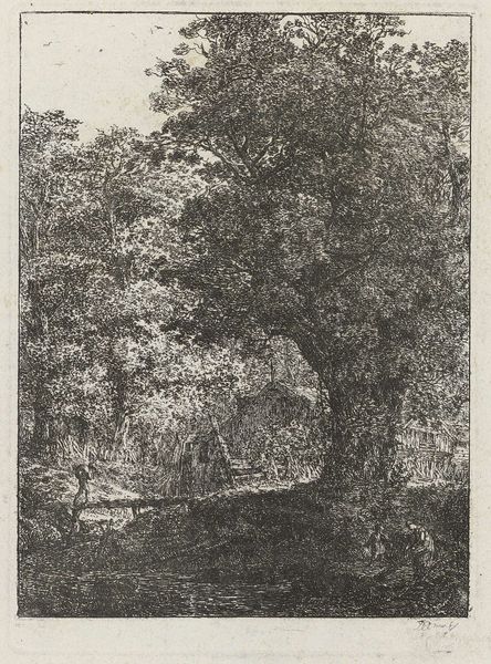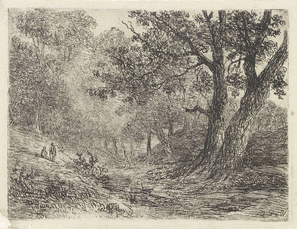 Roelant Roghman created this etching, "Seuniger bos," likely in the mid-17th century in the Netherlands. This image, now held at the Rijksmuseum, offers us a glimpse into the cultural significance of landscapes during the Dutch Golden Age. During this time, the Netherlands experienced a surge in economic prosperity and artistic innovation. The rise of a wealthy merchant class created a demand for art that reflected their values and surroundings. Landscapes, like this forest scene, became popular as symbols of national pride and connection to the land. Roghman's choice of a forest interior might be seen as a commentary on the relationship between humans and nature. Was he interested in exploring the social norms of conservation? Art historians can delve into period documents, travelogues, and ecological studies to uncover deeper meanings within this seemingly simple image. By understanding the social and institutional context, we can better appreciate the complex layers of meaning embedded in Roghman's work.