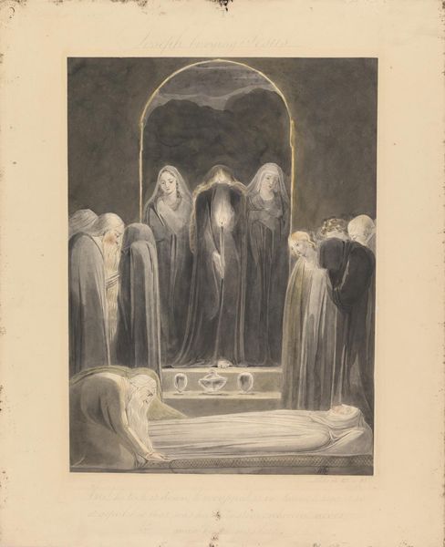 Editor: So, this etching from 1832-33, "Gedachte op de overgave van de Citadel van Antwerpen, 1832," by jonkheer Isaac Lambertus Cremer van den Berch van Heemstede... It's definitely got a somber vibe. Very stark. One figure standing, the other almost… crumpled. What do you see here, that maybe I’m missing? Curator: Missing? Child, you're seeing with fresh eyes! That starkness *is* the language. The surrender… etched not just in ink, but in spirit. That lone figure, so upright, is he victorious? Or simply… left standing? Consider the era— Romanticism’s grip. Not just pretty landscapes, but intense emotion, weighty historical moments rendered with personal drama. That slumped figure… is that defeat, or mourning? The emptiness surrounding them… does it echo loss, or potential? What do you *feel* it might represent? Editor: Hmm, I guess I just assumed defeat, but you’re right, mourning could be part of it. The etching is so dark, maybe it obscures the complexities, you know? It feels very immediate despite being about something historical. Like capturing a mood, not just an event. Curator: Precisely. It's a gut punch, isn't it? The artist has stripped away the fanfare, leaving us with the raw emotion of the moment. And isn't it fascinating how a seemingly simple etching can hold such a weighty narrative? Makes you wonder about the untold stories hiding within those shadows. Does history, for you, have a certain smell? A mustiness perhaps? Editor: It does, yeah! I think it's in the weight of unspoken details, things you have to look closer to find, like you pointed out here. I appreciate that--it is not just a recording of history, it feels human. Curator: It is all these things together! Art captures the nuance and texture of events as felt in the body, heart, and spirit. An engraving might feel light or distant but it is never emotionally neutral.