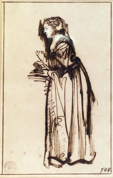 This print, made anonymously, probably dates to the 17th century and is made using the etching process. This involves coating a metal plate with a waxy, acid-resistant material, then scratching into the coating with a needle to expose the metal underneath. When the plate is bathed in acid, the exposed lines are eaten away, creating grooves that hold ink. The strength of etching lies in its capacity to create fine, detailed lines, and to allow for freely drawn compositions. In this print, we see these qualities used to depict a beggar, his clothing rendered with a virtuoso display of ragged textures. The figure's abject status is sharply conveyed, yet the very artistry of the print seems to elevate him as a subject. It's worth remembering that printmaking has always been a means of democratizing images, making them available to a wide audience. Even a humble beggar could find a kind of immortality through this relatively accessible medium. This print reminds us that materials and making are never neutral; they always carry social and cultural significance.