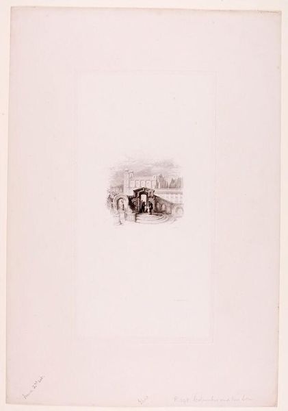 Curator: This delicate etching by Izaak Jansz. de Wit is titled "Visitors in a Nursery", dating from 1808. It resides in the Rijksmuseum. Editor: It's so contained. The oval frame focuses the eye so sharply on this little scene of leisured looking like some secret tableau, miniaturized. Curator: Precisely! The choice to encase it within an oval amplifies that sense of a carefully curated world. Consider the symbolism – the nursery represents nurturing, potential, a controlled environment, contrasting sharply with the tumultuous world outside. The family visiting echoes the biblical idea of the Holy Family too. Editor: Tell me, given the period, what do we know about print production at that time? How accessible would prints like these be and what economic value was attached to its craft? Was it paper made for purpose? Curator: Certainly, by the early 19th century, printmaking had evolved. This etching involved considerable skilled labor – the preparation of the plate, the acid etching process, and then the printing itself. So we consider not only the value of an etching by hand, but also, whether this could be a form of documentation for these new practices that could not be obtained easily anywhere else. Editor: And the tented structure, that's the glasshouse no? Such innovation in terms of building materials in the period; creating a whole microclimate for production of delicate exotica - a demonstration of industrial capacity, access to these specialized landscapes that were coming into being in the Dutch context. Curator: Indeed! The greenhouse as a structure represents controlled modification, even mastery, over nature. It's interesting to consider this through the lens of both class and the prevailing philosophies of the Enlightenment. There is clear symbolism here of human endeavor and even improvement over natural systems. Editor: And all within that oval frame! It adds a precious quality to the work. I am aware how print was becoming accessible - that does create an uneasy tension with this air of refined enclosure. Curator: A tension certainly at play between visibility and privilege. Something to consider. Editor: Fascinating insights! Thanks!