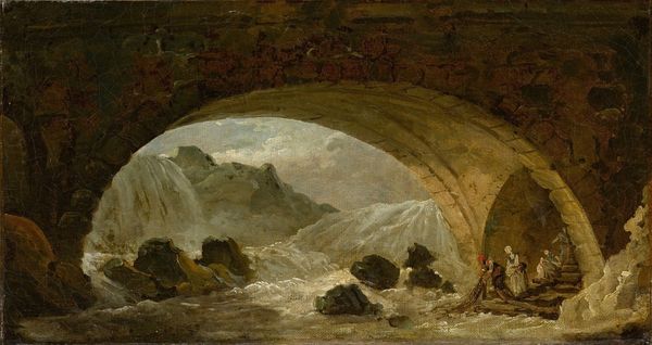 Arnold Böcklin painted "Attack by Pirates" using oil on canvas sometime in the 19th century. The artwork, steeped in Romanticism, plunges us into a scene of dramatic intensity with its foreboding atmosphere and turbulent waters. The composition is structured around the stark contrast between the towering, static architecture and the chaotic, dynamic sea. Böcklin masterfully employs chiaroscuro, heightening the emotional impact by contrasting light and shadow. Note how the imposing stone bridge forms a visual barrier, while the dark, swirling clouds mirror the agitation of the sea, creating a sense of impending doom. This work destabilizes traditional landscape painting. Böcklin uses the sublime power of nature to unsettle viewers. It rejects the picturesque in favor of a raw, untamed vision. The brushstrokes contribute to this by being loose, heightening the dramatic tension. Through its formal elements, "Attack by Pirates" invites us to reflect on the precariousness of human existence. The painting remains a compelling exploration of humanity's struggle against the overwhelming forces of nature and fate.