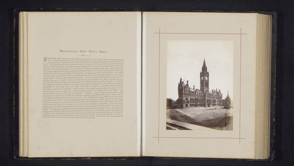 This albumen print of the exterior of Manchester’s town hall was made by J. McLeod at an unknown date. Albumen, derived from egg whites, gives this print its characteristic sheen and depth. It was a cutting-edge material in the 19th century. Look closely at the level of detail in the stonework and architectural features; photography like this was used both as a record and a celebration of modern construction. The very act of documenting the building's architecture speaks to its importance as a symbol of civic pride and progress. However, the production of albumen prints involved significant labor, from the collection and preparation of eggs, to the complex chemical processes required for developing the image. This photograph, therefore, is more than just a picture; it is a material embodiment of both industrial advancement and the labor that underpinned it.