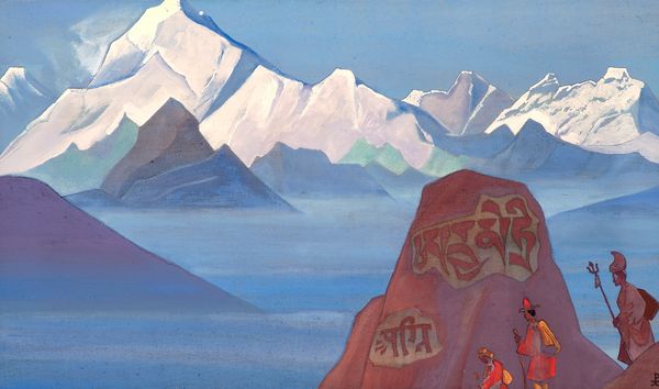 Nicholas Roerich painted ‘Milarepa, the One Who Harkened’ using tempera on canvas. At the forefront, we see Milarepa, the Tibetan Buddhist mystic, seated in the lotus position. This posture, ubiquitous across Buddhist art, symbolizes purity, love, and spiritual awakening. He is set against an imposing backdrop of sharply angled mountains that stretch into the distance. The mountains are rendered in blues and whites, evoking both the physical grandeur and the spiritual transcendence. In many cultures, the upward direction of mountains makes them important as symbolic representations of spiritual ascent, the path of transcendence, and the bridge between the earthly and the divine. The motif of the mountain has persisted through time in different religions and mythical traditions as sacred places. The emotional weight of the image lies in this intersection of the symbolic and real. Just as the mountain serves as a link between the earth and the divine, so does the image serve to stir a deep-seated longing for something more in the viewer.