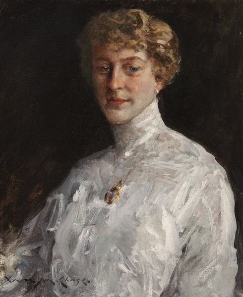 This is a portrait of Annie C. Lochrey Husson, painted by Thomas Eakins, and it's all about subtlety. Eakins builds up the image through layers of careful observation and muted tones. You get the sense he's really looking, figuring things out as he goes. The paint handling is fascinating here. Look closely at her dress, the way he captures the fall of the fabric with these soft, blended strokes. It's not about flashy technique. It's more like he's trying to get at the essence of the material. Notice the brooch at her collar, such a tiny detail, rendered with so much care. That little mark tells you so much about the world this woman inhabits, her quiet dignity. Eakins reminds me of Degas in a way, both of them interested in the quiet moments of everyday life. But where Degas is all about movement and light, Eakins is more grounded, more focused on the inner life. Ultimately, it's a portrait that leaves you with more questions than answers, and that's what makes it so compelling.