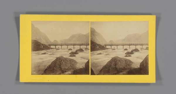 Curator: What an evocative image! This albumen print, likely dating from the 1860s, offers us "A View of the Surroundings of Stalheim, Norway," captured by Knud Knudsen. There’s a stillness to this work that I find so compelling. Editor: Yes, the first thing that strikes me is the scale. It's a relatively small photograph, yet it captures such a vast landscape. And the textures! I’m interested in the albumen process itself. Curator: Precisely! Albumen printing, incredibly popular at the time, involved coating paper with egg white, creating a glossy surface for the photographic emulsion. Knowing this process, one begins to understand photography as both a commercial enterprise and a specific way of image production and consumption linked with technology of its time. We see it as a cultural object produced using techniques, labour and means of the moment in which it was made. Considering gender and labor, albumen prints like this are always associated with unpaid women’s domestic labor during that period since they were typically charged to do all housework tasks. Editor: So, it's literally bound by those domestic material processes! It adds layers of meaning to how we consider labor in the art itself, from the photographer in the field to someone meticulously preparing the paper in another setting, quite probably within a family unit, reflecting specific dynamics of society then. What are the means of distribution of an albumen print such as this? And how would they then function as commodities to exchange? Curator: Absolutely. Consider the societal pressures on individuals traveling to or residing in such remote landscapes – it shapes the aesthetic. There are colonial undertones there when you begin thinking in terms of how people saw landscapes that had been considered previously less interesting or exotic by Europeans. We should then ask ourselves: to what use were the images ultimately meant, if not that? And whom might that affect most strongly as time would advance across coming generations. Editor: It all boils down to access. Who could afford the photograph, and by extension, who had the means to access the actual view, both geographically and economically. Curator: Indeed, that is something that must remain in sight, at all times. Thank you! Editor: And thanks to you for contextualizing that which underlies material processes!