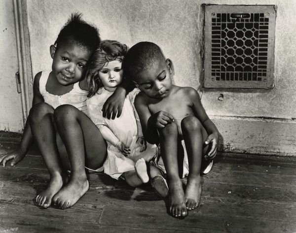 Curator: Gosh, this one gives me such a mixed bag of feelings, all tangled up like kite strings after a storm. Editor: We’re looking at an untitled, undated c-print photograph—scholars place it circa 1971—by William Eggleston. What evokes such a strong emotional response for you? Curator: It's those children. The clarity and vibrancy of the color make it feel like they're standing right in front of me, you know? But the way they’re placed in this vast, almost dreamlike landscape—there’s something so bittersweet about it. That huge expanse of the cotton field right behind them looms, not in a good way. Editor: Right. Eggleston is often credited with legitimizing color photography as a fine art form. But beyond aesthetics, this photograph captures a critical moment in America's agricultural and racial history. The setting appears to be the Mississippi Delta, historically reliant on enslaved labor, and later, exploited sharecropping systems, primarily Black communities. Those fields weren’t always for joy. Curator: Exactly! The contrast is sharp as a tack. These kids, dressed in their Sunday best, stand before a history of oppression. Their gaze meets ours directly; no room to squirm, and it really lands hard on the soul. And what is their relationship to those fields? Editor: Considering Eggleston's artistic vision, which often seeks to find beauty in the mundane, the everyday, one can wonder if he wanted to bring the everyday reality of these kids' lives—inextricably connected to this complicated history of agriculture—to the fore. It challenges the viewer to confront these hard realities. Curator: And he's brilliant at it! The composition is deceptive. Casual, almost snapshot-like, but deliberate and complex in what it conveys. All the green with spots of gold on this dry field makes you wanna reach out and touch something, anything. Editor: It's a powerful statement. The photograph uses a seemingly ordinary scene to spark discussions about power, history, and identity. What’s your biggest takeaway, after considering it from this lens? Curator: Well, seeing those kids' faces framed by that landscape makes me question my own position, you know? It's like, what am I looking at, and what am I *not* seeing? It's an unsettling and beautiful question. Editor: Precisely. Art should make us question, engage, and perhaps, act. Thank you for your reflections.