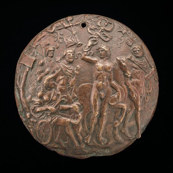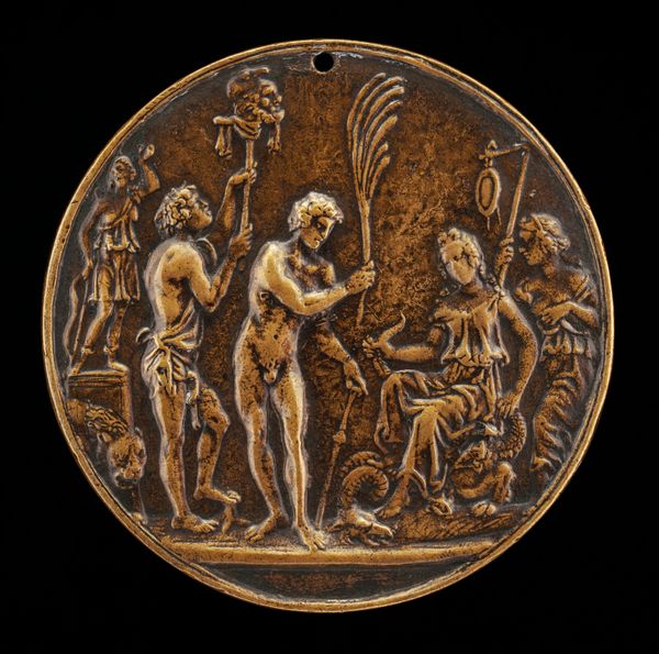 This bronze medal, made by Master IO.F.F. in the 15th or 16th century, presents us with a classical scene of gods in assembly. The image revives an interest in classical antiquity that was characteristic of the Italian Renaissance. The classical allusions of the image create meaning in several ways. First, the gathering of gods emphasizes a social hierarchy, a structure that would have been familiar to people living in Renaissance Italy. Secondly, the nudity of the figures reflects a renewed freedom of expression, compared to earlier periods in European history, and a self-conscious break from the visual norms of the medieval church. In this context, art history becomes a vital tool. By researching the classical sources of Renaissance imagery, and the social institutions of Renaissance Italy, we can learn more about the people who made and viewed works such as this. The medal shows us that the meaning of art is always dependent on social and institutional context.