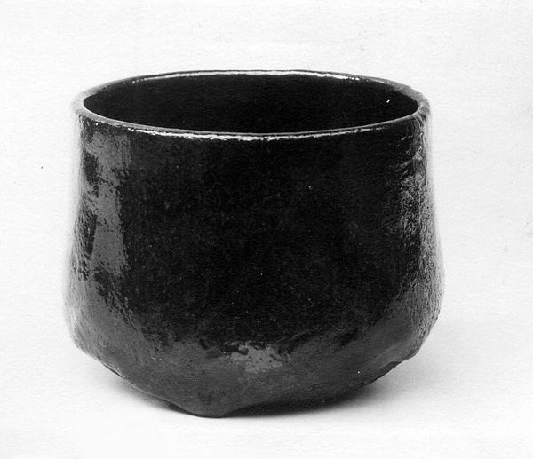 Curator: Let's turn our attention to this remarkable Teabowl, created sometime between 1665 and 1685 by the artist Ichinyu. It’s currently housed here at the Metropolitan Museum of Art. Editor: Immediately striking, isn't it? That powerful black glaze against the subtly irregular form; the play of light and shadow over that granular surface… It conveys a remarkable sense of gravitas for such a humble object. Curator: It certainly does. Tea bowls like this weren't just functional objects, but significant cultural artifacts in Japan. Consider the geometric precision, the conscious asymmetries - they point to the deeply meditative ritual of the tea ceremony itself, channeling mindfulness. Editor: Yes, and consider that rough-hewn texture, contrasted against that smooth lip! It’s an elegant demonstration of materiality and surface tension, offering both visual and tactile pleasure. A very potent object. Curator: Indeed, tea ceremonies are so deeply rooted in Zen Buddhism that these objects transcended simple function, taking on symbolic and spiritual weight for generations. They spoke, and still speak, to ideas about imperfection, acceptance, and tranquility. These aesthetic principles find resonance across much of Asian art. Editor: Thinking about this asymmetry…the artist used, and emphasized, distortion to suggest the organic, and, ultimately, human experience. The piece isn't merely about form or beauty; it reflects humanity’s imprint. This ceramic creation almost invites introspection, and begs consideration of the natural world. Curator: The practice of *kintsugi*, repairing ceramics with gold, often celebrated these imperfections. Any crack is seen not as a flaw, but a record of its existence and past life. Editor: Right, that adds another dimension. It's more than just admiring an object; it's about recognizing history etched in physical form. Curator: Absolutely, it's a lovely object with a lovely history! I see it speaking to the human story across its elegant, yet imperfect surface. Editor: I concur. And on the surface of the everyday, it's hard to imagine a stronger articulation of quiet grace than is on display with this wonderful Ichinyu Teabowl.