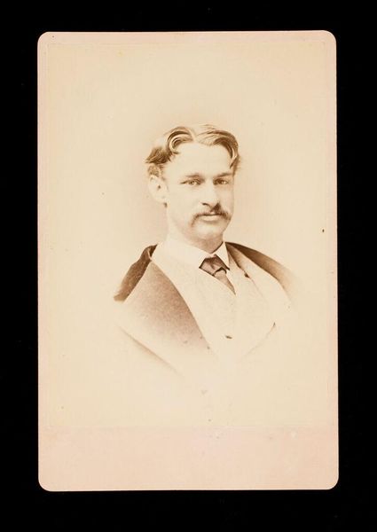 Editor: This is a portrait of Henry Augustus Richardson, taken by John Adams Whipple. The oval shape and sepia tones give it an antique feel, yet the man's gaze is so direct. What do you make of the symbolism in this early photograph? Curator: Note how the stark clarity contrasts with the soft, blurred edges, creating a liminal space. The dark coat, almost uniform-like, frames the face--a face that seems to carry the weight of expectation. What memories, what narratives, do you think it holds? Editor: I hadn't thought about it as a constructed narrative. It's like the image is both revealing and concealing at the same time. Curator: Precisely! Early photography was often about presenting a carefully crafted persona. Reflect on how the image itself becomes a symbol, laden with the aspirations and anxieties of a burgeoning nation.