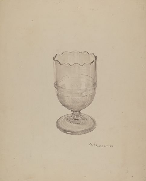 Ralph Atkinson made this watercolor painting titled ‘Salt Dip’ at an unknown date. Salt dips were small, open containers used for individual servings of salt, popular during the late 19th and early 20th centuries when pouring salt was considered impolite. The painting provides a glimpse into the dining etiquette and social customs of the time. The presence of a specific vessel for salt suggests a level of formality and attention to detail in dining practices. The formal qualities of this painting are also relevant when understood as part of a larger project of documentation and standardization. Atkinson was painting for the ‘Index of American Design’, a New Deal project that documented American decorative arts. This project suggests that authorities were hoping to define and stabilize ideas of American identity during the Great Depression. To understand this painting further, we could consult etiquette guides, household inventories, and design catalogs from the period to see how these objects were positioned in relation to ideas of American identity.