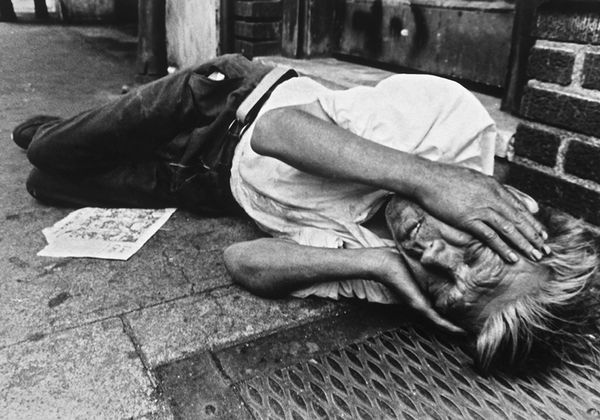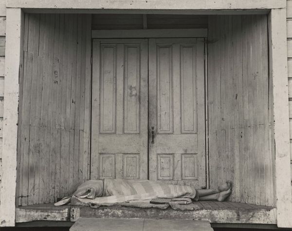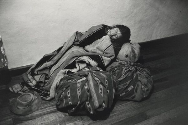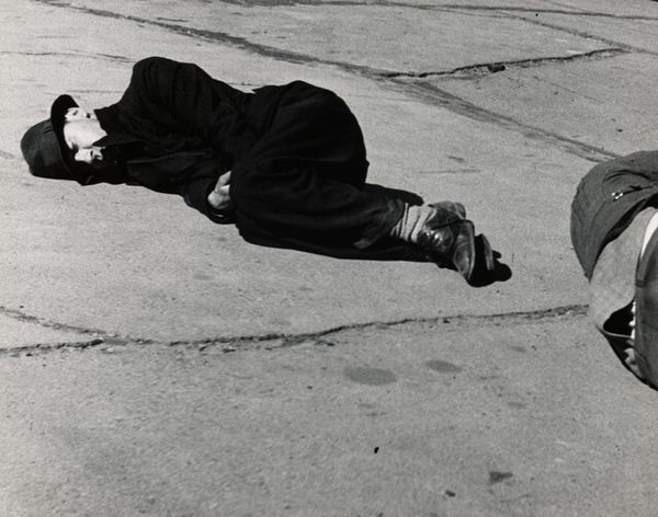 Curator: This is “Sleeping Place,” a 1973 work by Antony Gormley. It exists as both a sculpture and a photograph documenting the original installation. Editor: Well, my immediate impression is one of…enclosure. Almost claustrophobia. This form swathed in what looks like plaster-soaked cloth has an oppressive feel to it. What do you make of its shape? Curator: Intriguing, because the very materials—plaster, cloth—belie the sense of permanence. It presents a paradox: fragile materials attempting to mimic, or perhaps mock, monumentality. Notice how Gormley carefully articulates the draping to emphasize the horizontality. Editor: Good point. Thinking historically, it feels of a piece with other body art experiments from the 70s. Artists grappling with the boundaries between the self and its representation in a rapidly changing political landscape. Was this ever exhibited publicly at the time? Curator: Details on its initial exhibitions are scant, actually. Its existence as a photograph suggests the performance, the event, might have been as important as the object itself. The monochrome intensifies this reading. What are your thoughts? Editor: Right, it pushes us to think about absence and presence simultaneously. What's beneath the plaster? A body, ostensibly. Yet the body is entirely absent from the picture, isn’t it? Erased. Curator: Precisely! It’s about what is *implied*. Think about how Gormley used his own body as a point of origin, which is the catalyst for his later cast iron sculptures. We can decode his preoccupation by viewing "Sleeping Place" through this lens. Editor: That prefigures much of his later, well-known work where he is trying to deal with individual anonymity in the modern era. The very public nature of that art is an antithesis of the shrouded intimacy of "Sleeping Place." It seems so quiet, almost reverential in contrast. Curator: Yes, exactly. It seems like "Sleeping Place," far from a mere preliminary, contains the core elements which are so evident in Gormley's further exploration of the body and space, but manifested with a very private, minimal expression. Editor: A telling prelude then, wouldn't you agree? It casts his better-known works in an even starker light knowing their origins.