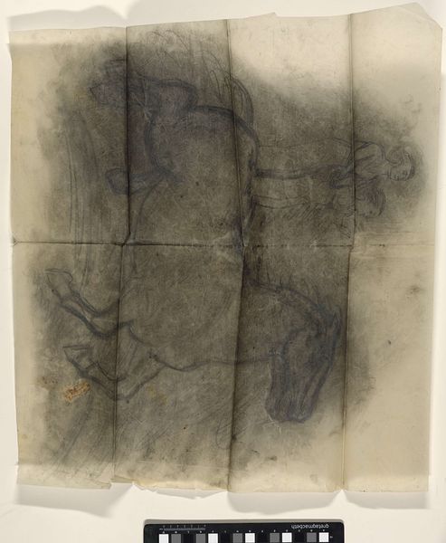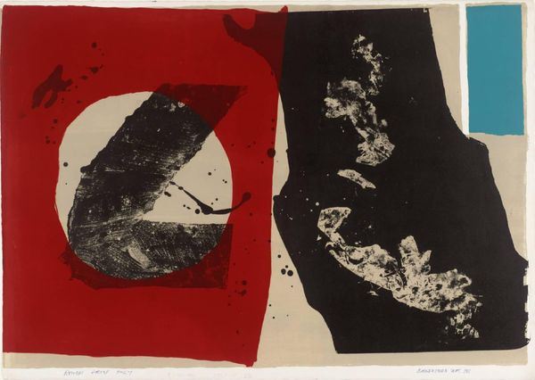 Curator: We're now standing before Carl Buchheister's "Composition Juviem" created in 1959, an intriguing example of his work with ink and watercolor. What are your initial thoughts? Editor: A kind of muted chaos, wouldn’t you say? The ink bleeds and drips downwards, giving a sense of gravity, almost a visual representation of melancholia or a weighty subject. It's interesting how he leaves so much untouched canvas. Curator: Indeed, that negative space is crucial. Consider the composition itself: the stark contrast between the dense black ink and the raw paper establishes a powerful dichotomy. Note also how the various pools of ink seem to define certain gestural lines which imply form without actually depicting it. Editor: But beyond the aesthetic appeal of line and texture, what statements might Buchheister be making about post-war German identity, through abstract form? It’s worth exploring the context, that these sorts of works offered ways to work against notions of imposed national narratives of the period, you know? Curator: While context is of course significant, I’m also curious to see it outside this reading. Observe his strategic deployment of accident and chance. The ink’s inherent fluidity dictates part of the process. It relinquishes a degree of authorial control, no? Editor: I'd argue that relinquishing control becomes a vital, subversive act. And by breaking down representation in art, he perhaps suggests breaking down rigid structures in a rapidly changing social and political context. The lack of traditional "finish" to the work invites new viewership interpretations. Curator: An excellent point. Ultimately, "Composition Juviem" offers a stimulating engagement with form, material, and process—but can you feel Buchheister playing off of Surrealism and even Cubism as well? He really synthesizes a great deal. Editor: Absolutely. Viewing this artwork has me considering what constitutes a ‘complete’ thought—or a complete societal framework in flux, for that matter. It all begs us to re-examine what has been historically centered and, alternatively, marginalized in both art history, and even just daily interactions.