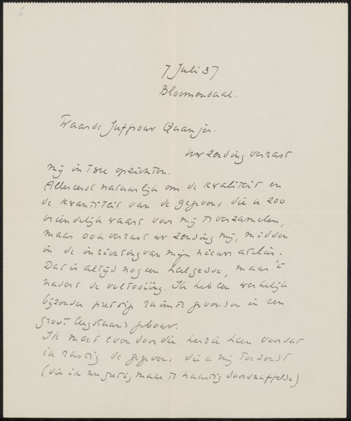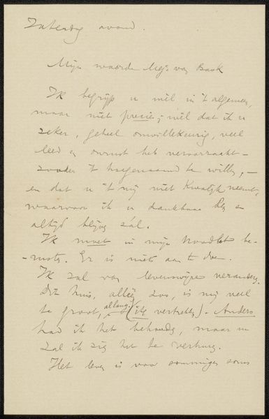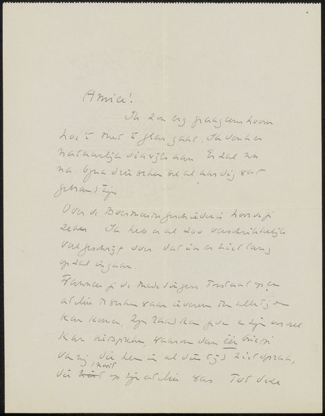 This handwritten letter, penned by Richard Nicolaüs Roland Holst, is a reminder of artmaking as a process. It's a dance between thought and hand, captured in ink on paper. Look at the quality of the paper – its texture probably dictated how the ink spread, influencing the form of each letter. Holst’s hand moves across the page, creating a unique rhythm. See how the strokes vary in thickness, reflecting the pressure he applied. It feels intimate, like we’re glimpsing his thoughts as they take shape. Notice the words that are smudged, the corrections, these are not mistakes but part of the process, revealing the artist’s engagement with the act of writing itself. This letter reminds me of Cy Twombly's scribbled paintings, where the process of making is as important as the final image. Art is a conversation across time, and in this letter, we see a glimpse of Holst's voice, echoing even now.