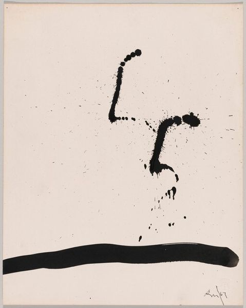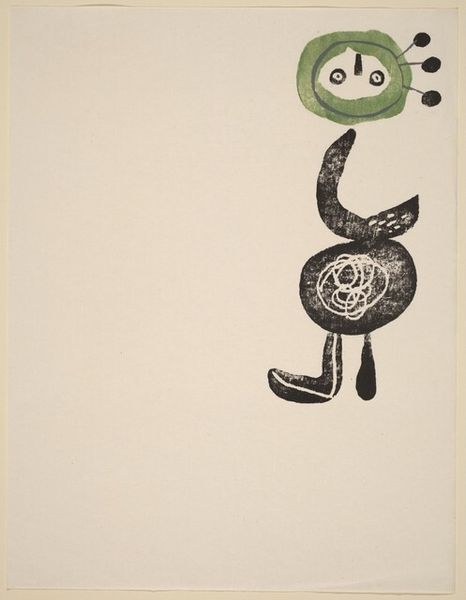This is an untitled print made by Joan Miró, we’re not sure exactly when. Looking at this, what strikes me is the sense of the unknown, and Miró's commitment to art-making as a process. There's a roughness to the forms, a deliberate embrace of texture. The dark marks against the blank background make you wonder what kind of tool he might have used. Was it a brush, or something else entirely? I love how he leaves so much open to interpretation. It’s almost like an alphabet, but a completely personal one. Look at the form that looks like a table. The way those two short legs have been applied is a great example of how Miró doesn’t conceal the way this thing was made; in fact, he draws attention to it. It reminds me a little of Cy Twombly. For both artists, it's not about the final image, but about the dance between intention and accident. Isn't art an ongoing conversation?