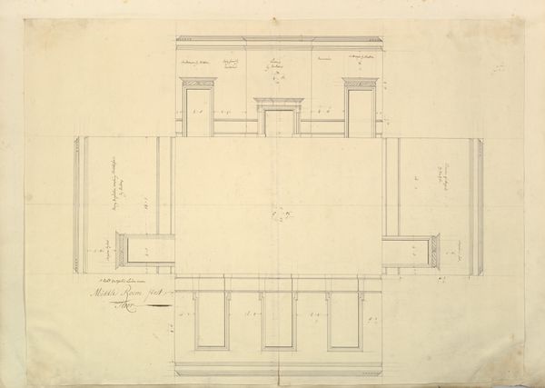 Curator: This is a fascinating object, titled "Chest on Frame." The drawing on paper, rendered in pencil by B. Holst-Grubbe around 1937, offers a very meticulous depiction of furniture. It's quite striking in its academic approach, with its clean lines and geometric shapes. Editor: Yes, my initial impression is one of austere functionality. The cool detachment and blueprint style, emphasize precision and planning, as though extracting any sense of craft in itself and giving center stage to the function of things. There's something deeply intellectual and almost coldly rational about the composition. Curator: Indeed, the visual language here evokes more than just practical schematics; the symbolism of "home", here the "Bed Room, Sewal House, Secretary M", is fascinating. Could it relate to class dynamics of that era, do you think? An intimate glimpse into an office space—likely of a person of authority? The image is itself an architectural symbol representing authority, which is in turn an icon for the patriarchal structures of governance at the time... Editor: I see your point, but let's consider how those spooled legs carry cultural weight, going far beyond the social-economic factors and power. The repetitive form in the legs echo classical columns, implying longevity and steadfastness – foundations not just for furniture, but also cultural traditions and heritage. The "chest" itself could symbolize security and preservation: think of family heirlooms, stories locked inside. It might relate to a sense of history, of carrying the weight of the past into the present. Curator: That is insightful: the piece’s visual repetition of similar yet slightly varying shapes, further accentuates a sort of “grounded” stability. How do you think these design features influenced the culture of that period, in domestic settings of a more priviledged individual at the time? It appears Holst-Grubbe focused heavily on the front and end views of the design rather than offering further design elements that catered to newness of the early-20th century artistic style? Editor: What feels most evocative about it, for me, is the overall preservation aspect...as well as the repetition in symbolism across several levels. This blueprint reminds us of that human need to contain and catalogue our stories in concrete form. As viewers, we have access to all facets, much as the house's secretary or even designer. Curator: Looking again, what first seemed cold is indeed deeply layered. I see the fusion between structure and societal storytelling through the ages. It's a remarkable statement. Editor: I agree. These details transform my original impression and provide greater depth. Thank you.