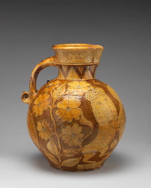 This terracotta jug, or oinochoe, was made in Greece by the Group of the Early Olpai. Its decoration of a striding lion invites us to think about the cultural context in which this object was produced and used. The geometric patterns and stylized animal motifs are typical of the Early Corinthian style, dating back to the 7th century BC. Corinth was a major center of trade and culture in ancient Greece, and its pottery was widely exported throughout the Mediterranean. Images of animals, such as this lion, appear frequently in ancient Greek art, often carrying symbolic meanings related to power, courage, or divinity. The depiction of such animals in a stylized manner reflects the cultural values and beliefs of the time, where symbolic representation was as important as realistic depiction. By studying objects like this jug, and consulting archaeological reports, historical texts, and comparative analyses of similar artifacts, we can learn a great deal about the social, economic, and artistic practices of ancient Greece. The meaning of this jug lies not just in its aesthetic qualities but in its ability to reflect the world of its creators and users.