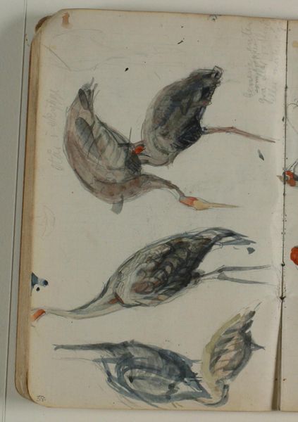 These sketches of cranes were made with pencil and watercolour by Niels Larsen Stevns, though we're not sure exactly when. I'm drawn to the artist's commitment to process. He’s not trying to hide the messiness of art-making. The watery paint and loose pencil marks create a sense of movement, as if the birds are caught mid-flight. I can almost see the artist's hand moving across the page, trying to capture the essence of these creatures. The grey wash on the wings is particularly beautiful, a kind of shorthand for feathers, light and shadow. The way the cranes overlap creates depth, even though it's just a sketch. There's something very immediate and honest about this work, like looking over the shoulder of the artist. For me, someone like Cy Twombly comes to mind with his use of layering and visible erasures. I think this piece shows how art is always in conversation with itself, across time and between artists. It's like a game of telephone, where ideas are passed on and transformed with each new voice.