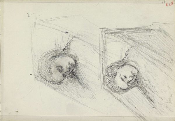 Curator: Today we're looking at "Fire studier af et barn, det ene i en vugge" by Peter Hansen, a drawing done with pencil sometime between 1904 and 1908. Editor: It's immediately striking how gentle this is. You can almost feel the lightness of the artist's touch. The soft pencil strokes give a delicate sense of new life and vulnerability. Curator: Indeed. What Hansen achieves with the pencil is noteworthy; the cross-hatching particularly creates the subtle modeling of the forms and evokes a distinct three-dimensionality in what is, after all, a drawing. It almost suggests he's consciously toying with planes of light. Editor: The repetition of the subject really adds a dimension, doesn't it? It’s like glimpsing into the artist's process, catching fragments of an idea as it takes shape. It lends intimacy. You know, my grandmother always said drawing a child was the truest test of an artist's soul! Curator: Perhaps she had a point! What is striking is the economy of line; Hansen communicates so much with very little. It moves between close observation and what one could even describe as near abstraction, particularly around the perimeter. The indeterminate space makes the composition incredibly engaging. Editor: And each individual sketch captures a different aspect of the child's presence, one so still, another quite alert. This resonates with my own memories, each one precious and so uniquely held, don't you think? It shows an attempt to capture a fleeting, ever-changing subject in the permanence of art. Curator: Precisely. This piece from SMK provides valuable insights into Peter Hansen's method. He used these sketches, which retain a great level of expressivity and freedom. Editor: I find it wonderfully charming and it also reminds me of life's preciousness. So much captured in so few lines.