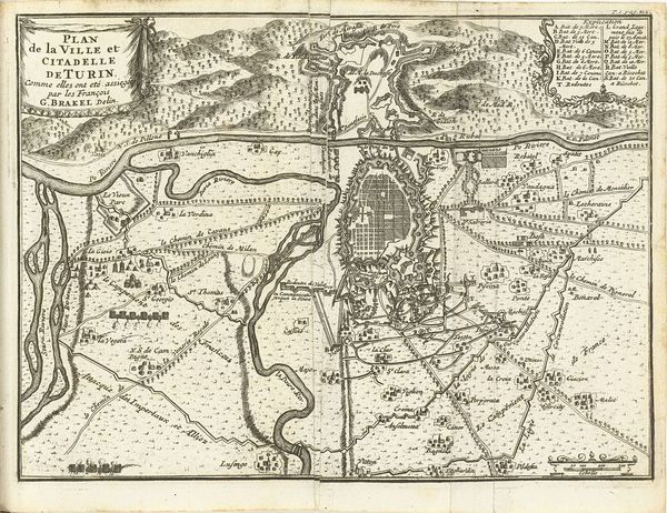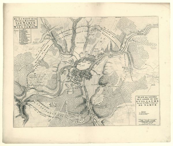 Matthijs Pool created this print titled, "Siege of Menen, 1706," using etching techniques. This piece provides a detailed illustration of the siege during the War of the Spanish Succession. Pool, born in Amsterdam, lived in a society undergoing significant political and military upheaval. Consider how maps of this period were not only geographical tools, but also strategic assets and instruments of power. They influenced military planning and shaped public perception of these conflicts. Look closely at the siege, which represents a clash of empires and the human cost of war. The detailed rendering of fortifications and troop movements presents a controlled, almost clinical view of battle. Yet, it belies the intense human drama of conflict. This artwork encapsulates the intricate dance between power, knowledge, and representation in a time of constant change.