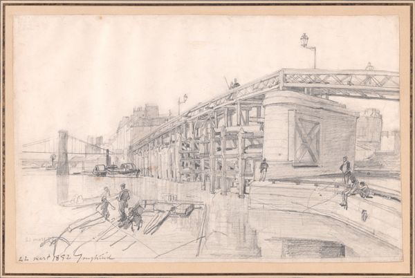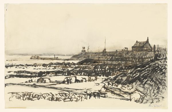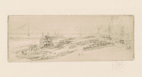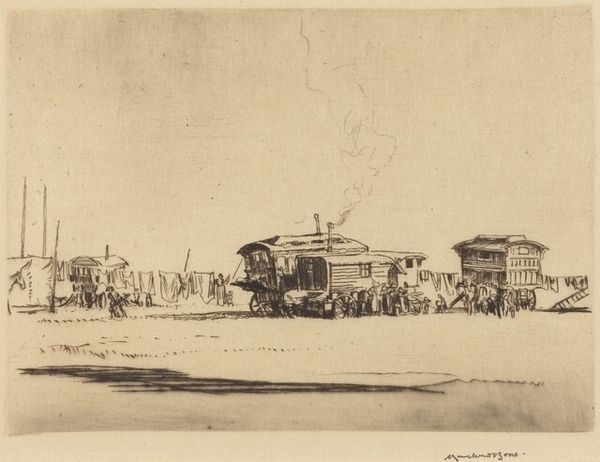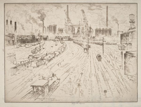 James McBey captured Birkenhead Ironworks with watercolor and ink in this, well, let's say the date's a bit of a mystery. The washes of diluted ink create a sense of space and light, especially in the sky, which feels vast and heavy with moisture. There's a real push-pull between the precision of the architectural details, quickly sketched, and the more atmospheric, almost blurry rendering of the surrounding environment. I'm drawn to the way the lines of the railway tracks converge, pulling you into the scene, right into the heart of the industrial activity. The blue tints on the ironworks themselves give a sense of monumentality. This reminds me a little bit of Whistler's industrial scenes along the Thames, but with a slightly rougher, more immediate feel. There's something about the way McBey embraces the messiness and ambiguity of the scene that feels very modern. It shows, once again, that art is more about asking questions than providing answers.