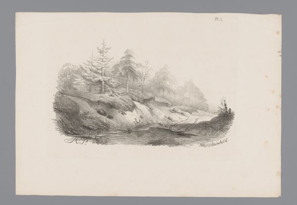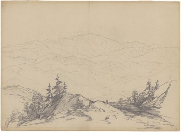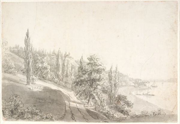Editor: Here we have "Bach im Hochgebirge mit Tannenwald in starkem Wind," or "Stream in the High Mountains with Fir Forest in Strong Wind," by Theodor Verhas, housed right here at the Städel Museum. The monochromatic color palette is giving me almost a desolate vibe... What do you see when you look at this piece? Curator: Desolate...that's a fascinating choice of word, because initially, I feel a robust energy – like a hailstorm brewing just out of sight. But, you're right, that dominant tone is a little melancholy. It whispers of nature's indifference, wouldn't you agree? The ink and gouache on paper feels like a fleeting capture, as if the artist had to work incredibly quickly to record the wind's urgent song. Have you ever felt that pull when a landscape just *demands* to be immortalized? Editor: Definitely. Like it has something to say. So, it’s not necessarily about replicating the landscape perfectly? Curator: Not at all! It's more about Verhas's emotional interaction with the scene. The pencil, ink, and gouache almost dance together to conjure a feeling – the raw power, that wildness. Consider how the sweeping lines of the trees mimic the rushing water... what do they whisper to each other? I see more than just wind; I sense a deep conversation. Editor: That makes total sense. I was so focused on the technique, I forgot about the, dare I say, spiritual aspect. Curator: Exactly! The beauty here lies in the conversation it sparks *within* us, the echoes of our own experiences of being swept away. Thank you for bringing me back to my own love of landscapes. It's all in how you approach that silent dialogue. Editor: It's amazing how much you can find when you just pause and listen, right? I think I’ll spend some more time doing just that. Thanks!