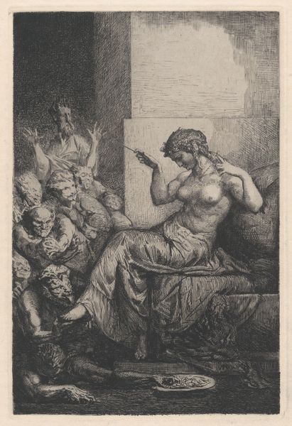 This engraving by Charles Heath the elder illustrates a scene from Shakespeare’s "Midsummer Night’s Dream," capturing Titania, the queen of the fairies, enchanted and in love with Bottom, who has been transformed with the head of a donkey. Here, the donkey head becomes a powerful symbol of the irrational, the animalistic side of human nature taking control. We see echoes of such transformations in Ovid, and Apuleius' "The Golden Ass", where men are turned into beasts, often as a punishment or a test. This motif, laden with psychological weight, speaks to the precarious balance between reason and primal instinct. Consider how the image of the donkey can be traced from ancient fables, often linked to the Dionysian cult of ecstatic abandon, to its resurgence in the Renaissance. The emotional tension—the irrational love of Titania—engages viewers on a deep, subconscious level. This cyclical progression of symbols, how they resurface, evolve, and take on new meanings in different historical contexts, reflects our collective memory.