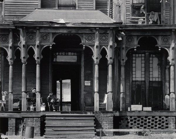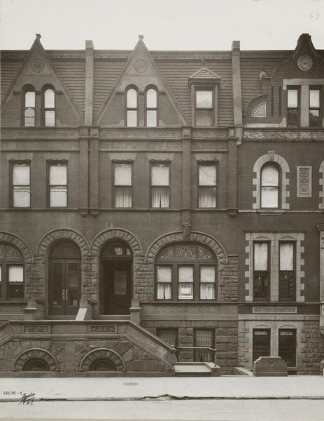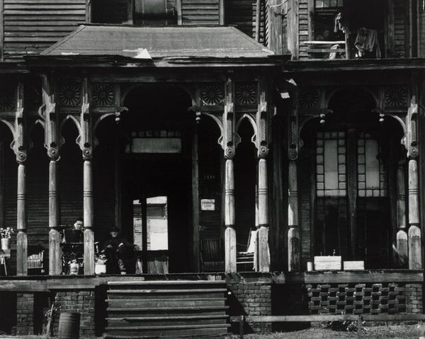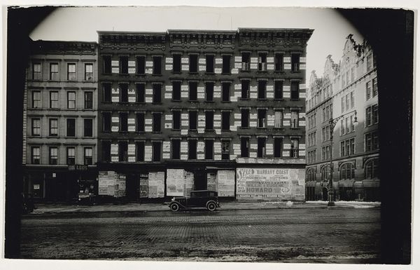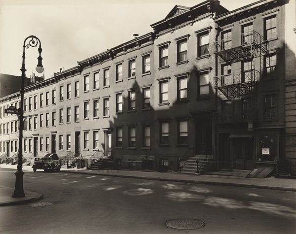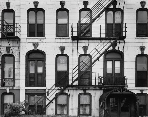 Curator: Immediately, I am struck by the rigidity, the ordered severity. The tight monochrome tonality accentuates the geometry. Editor: You know, that’s a really astute observation about this stark architectural study. This is a photograph by Harry Callahan, titled "Dearborn Street, Chicago," taken sometime after 1948. For me, it reflects an urban experience marked by social divisions, particularly after the war when urban decay intensified due to inequitable housing policies. Curator: Absolutely. Visually, Callahan employs a limited tonal range, and that accentuates the structural integrity of the building’s facade, with its sequence of windows and austere geometry. Editor: The way Callahan positions the architecture feels like an examination of social barriers and the challenges of upward mobility within marginalized communities during this period. Consider how closed-off the building looks. How might ideas about home and shelter function when looking at those tightly drawn curtains or blank windows? Curator: While I recognize the important sociocultural aspects, for me, this composition also creates visual rhythms. The verticals and horizontals establish the plane. Editor: True, the geometry cannot be dismissed, it holds tension, especially knowing Callahan used a straightforward photographic style. His approach also allows him to engage with reality, framing its complexities but doing so while perhaps subtly referencing or confronting political injustices. Curator: His emphasis is on revealing structure through stark tonal values; that structure dictates a clear urban image—its essence extracted, defined and delivered via stark photography. Editor: Callahan provides a compelling exploration into urban society, prompting reflection on what visibility—or its absence—can reveal about communities. His work serves as a mirror, inviting critical thought on civic policy and its impact. Curator: Reflecting on that rigidity versus expressiveness of tone really frames the essence of Callahan’s work. Editor: This particular photograph makes me think about how we need to re-evaluate assumptions related to mid-century photographic traditions and examine those contributions from a socially informed position.