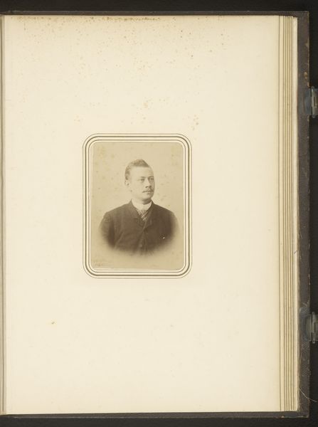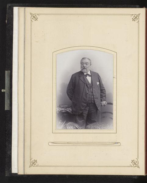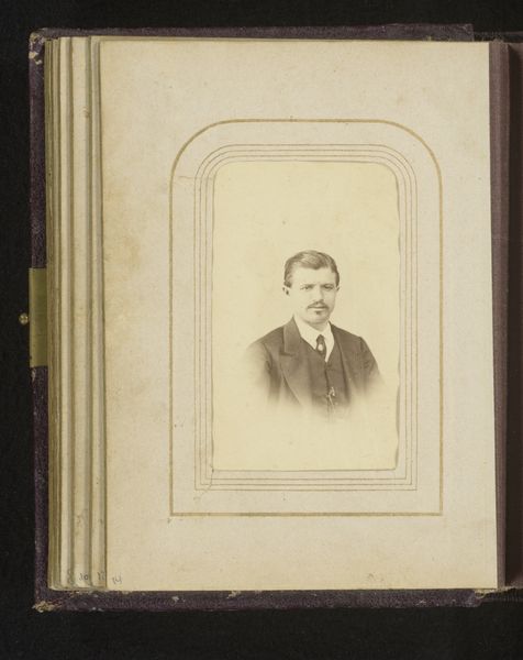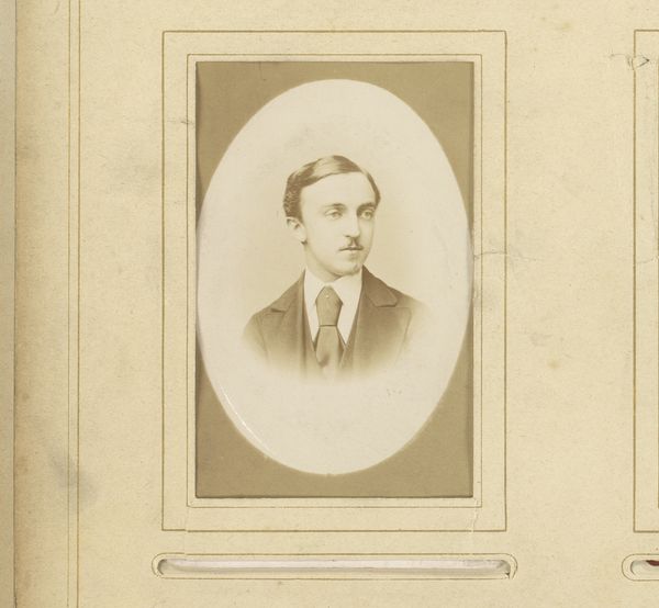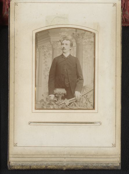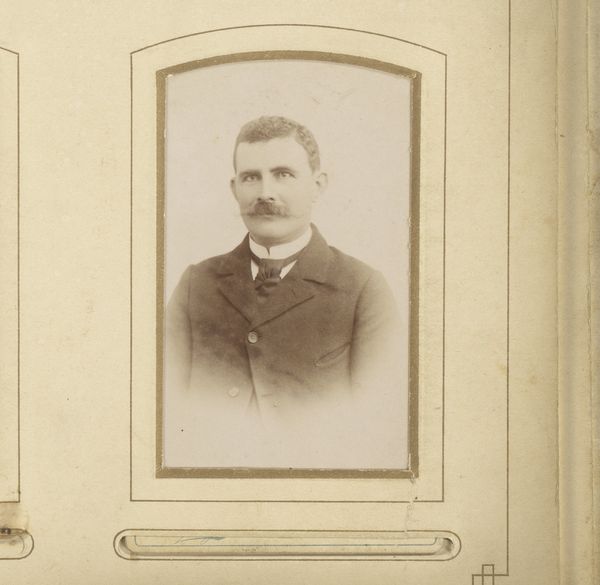 Curator: Before us, we have "Portret van een man," a photograph by George Emberson & Sons, likely taken sometime between 1903 and 1920. Editor: Immediately, I'm struck by the formality, but there’s something vulnerable in his eyes. He’s staring right through me, slightly weary. The sepia tones feel like a distant echo of someone's life. Curator: Absolutely. The image, rendered in realistic detail through photography, captures not just a likeness but something of the sitter's social standing. The suit, the meticulous grooming – these are markers of a particular class and era. Portrait photography at this time became a burgeoning business and an accessible way for middle class families to assert their place in society, so how do you respond to the way it feels staged or posed, from a creative stance? Editor: It does feel posed, self-conscious almost. Like he's performing for the camera, enacting a role, which makes me think of all the unspoken expectations of that time and place. Maybe this photo was taken as an act of familial obligation. Perhaps, also it was a method for the sitter to immortalize the moment to defy his eventual mortality by being captured in portrait. I love to see the sepia rendering in a way that amplifies time, so one feels they are encountering a figure that once walked. What can you tell me about the company? Curator: George Emberson & Sons was, evidently, a photographic studio serving a particular clientele. Studios like this played a role in shaping visual culture, popularizing certain styles of representation and solidifying social hierarchies through imagery. By presenting portraits of this genre in a formal pose with specific lighting, social expectations for family, class, and cultural relevance are revealed. The artistic appeal might lie more in what these historical documents tell us about society at the time. Editor: So true! To me, what really draws you into these old portraits, these frozen moments, is this question: What was he really thinking? His mustache tells a whole other story and what a beauty! There’s so much weight there in the way light and shadow form across his face. You almost forget it's a photo and it could become an evocative painting! Curator: Precisely. The tension between the sitter’s interior world and the constructed image makes us question the function and potential art historical value. These are more than just photographs but objects worthy of collecting and investigating based on visual material culture. Editor: Indeed, it allows us to meet a stranger from the past and weave an untold story. Curator: Agreed. Thank you.