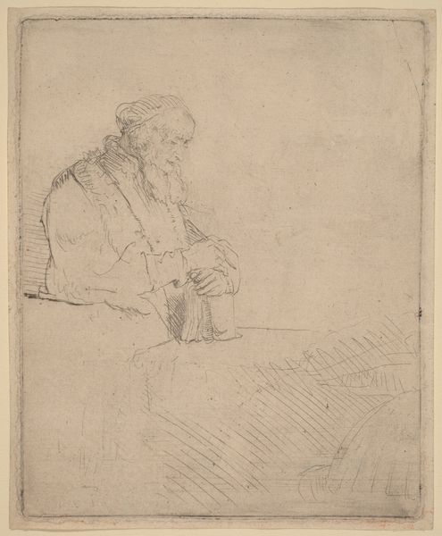 This is Jan Veth's portrait of Petrus Josephus Hubertus Cuypers, made using graphite on paper. The choice of graphite as a medium has a direct impact on the appearance and significance of the artwork. Graphite drawings such as this one are typically associated with preparatory sketches, studies, or informal portraiture. The inherent qualities of graphite allow for subtle gradations of tone and fine lines, creating a delicate yet detailed representation of the sitter. The drawing captures Cuypers in a moment of contemplation, his gaze cast downward, possibly engaged in design work himself. Veth's choice of a relatively quick and accessible medium reflects the intention to capture Cuypers's likeness in a more intimate manner. By emphasizing the materiality and process behind this work, we can begin to understand how it challenges traditional notions of portraiture and craftsmanship.
