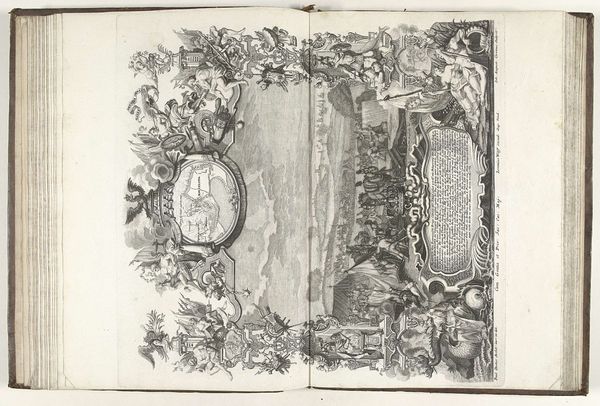 Johann August Corvinus created this print, "Inname van Luik, 1702," using etching around that same year. This work gives us a glimpse into the world of the War of the Spanish Succession and the battles fought for control of territories like Liège. The print blends military action with allegorical elements and cartographic precision, reflecting the multi-faceted nature of war during this period. The detailed border teems with cherubic figures and weaponry, framing the central image of the siege. It's intriguing to consider the role of propaganda in images like this. How did they shape public opinion about these conflicts? How did the artists see themselves and their place in history? The combination of artistic skill and historical documentation invites us to reflect on the human costs of these grand strategies.