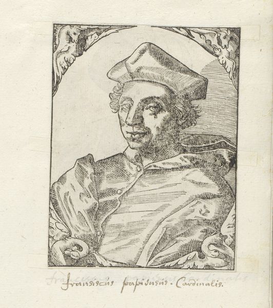 This portrait of John Fisher was made by an anonymous artist using the technique of engraving. Notice how the intricate network of lines creates a sense of depth and texture. This wasn't drawn directly onto paper, but rather incised into a metal plate. The artist would have used a tool called a burin to carve these lines, a laborious process that demanded both precision and planning. Once the design was complete, the plate would be inked and pressed onto paper, transferring the image. Engraving was a key technology for disseminating information and imagery, and portrait prints like these played a vital role in shaping public perception. The very act of multiplication allowed for the image to circulate widely, contributing to the subject's fame. Though relatively small in scale, this print carries significant weight as a testament to the power of reproduction and its impact on society. It makes you think about the labor involved, and the social role that it played.