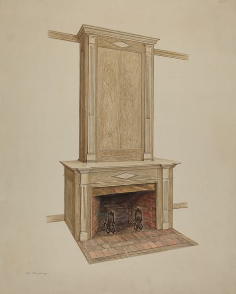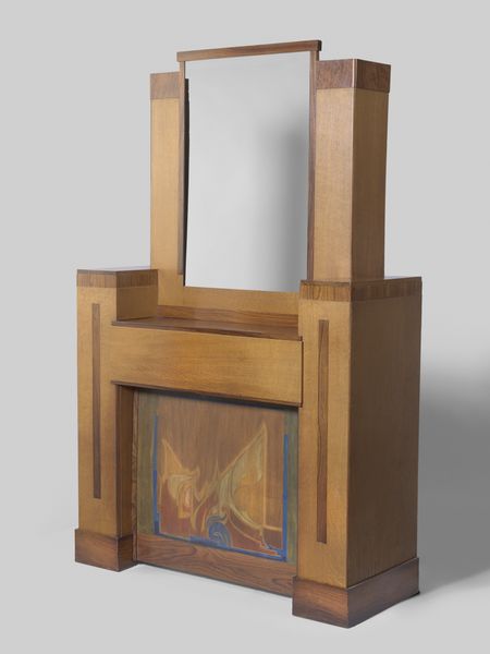 Editor: Here we have Christen Købke’s "Console Cupboard with a painted motif, shelf with stones" from the 19th century, housed at the SMK. It’s crafted from wood, and I’m struck by how simple and austere it is. What story do you think this cupboard is telling? Curator: This unassuming cupboard actually invites a critical dialogue around how we classify and value objects. Think about it: a domestic object, striving for artistry. What societal expectations were being challenged, or perhaps reinforced, by attempting to elevate the everyday? Does this cabinet attempt to blur the boundaries between ‘fine art’ and ‘decorative art’? And how does that blurring speak to gendered hierarchies within the art world of the 19th century? Editor: Gendered hierarchies? Is it as simple as assigning feminine qualities to domestic objects and then devaluing them because of that? Curator: It’s much more complex. Consider how women artists were often relegated to domestic scenes and "minor" arts. By presenting this decorated functional object, Købke inadvertently engages with these debates around artistic labour, value, and gender. Also, observe the shelf of stones within: natural, unrefined matter juxtaposed with the crafted, painted surface of the cupboard. What might that juxtaposition suggest about our relationship to the natural world? Editor: So, it's about challenging our assumptions about value and what is considered 'art' within specific social structures? Curator: Precisely. And how objects like this – seemingly simple – can be powerful tools for deconstructing those assumptions, opening avenues for more inclusive and nuanced understandings of art history and its role in perpetuating or dismantling power structures. Editor: I never thought I'd find so much in a simple cupboard. It’s fascinating to view art as a conversation about social roles. Curator: Exactly! Everyday objects often conceal radical commentary. Art makes us question, doesn’t it?