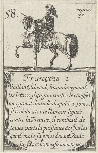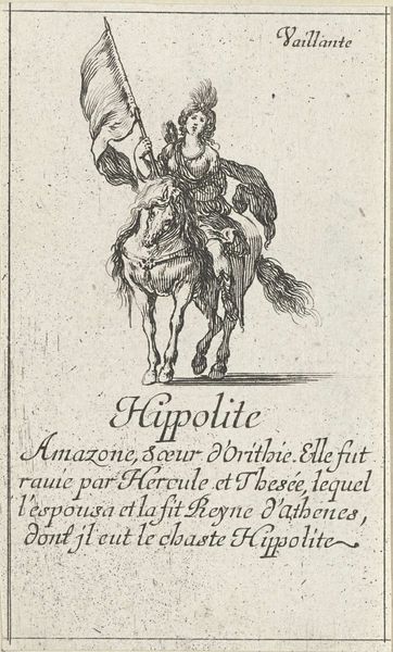 This print, Vrouw uit Turkije te paard, was made by Stefano della Bella sometime in the 17th century. It’s an etching, a printmaking technique that relies on acid to bite into a metal plate, creating lines that will hold ink. The relatively small scale of this print speaks to its original purpose: likely a book illustration, intended for dissemination. The controlled precision of the etched lines shows both technical mastery, and the social context of skilled artisanship. Consider the labor involved, both physical and intellectual, in producing such an image. Prints like this were a key technology in early modern Europe, allowing images and ideas to circulate widely. By reproducing "Turkey" in multiple, Della Bella's print helped shape European perceptions of the East. Its flowing lines and ornate details reflect a specific aesthetic, and also speak to the power of mass production in shaping cultural understanding.