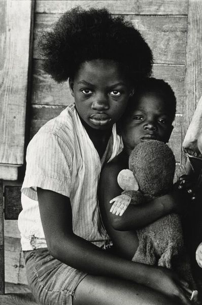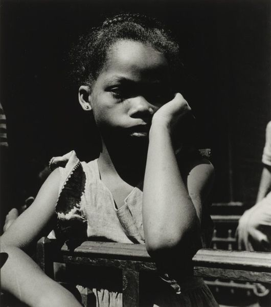 Gordon Parks made this gelatin silver print, *Children Looking Through Window of Car, Harlem*, and what strikes me is the level of control in the tonality. Parks coaxes so many shades from light to dark, which creates a sense of depth and texture. Parks isn't just pointing and shooting, but really thinking about how light shapes the image. It’s a study in contrasts, those brilliant highlights on the children’s faces against the deep shadows of the car's interior. Look at the reflection on the window, like a pane of glass separating us from their world, and how that plays with the composition. There's a push and pull between the subjects and the formal qualities, almost abstract, but always grounded in the human element. This photograph reminds me of the way Roy DeCarava also captured life in Harlem, with a similar eye for the nuances of black and white and its ability to evoke the feel of a specific place and time. Photography is about seeing, and Parks invites us to really look.