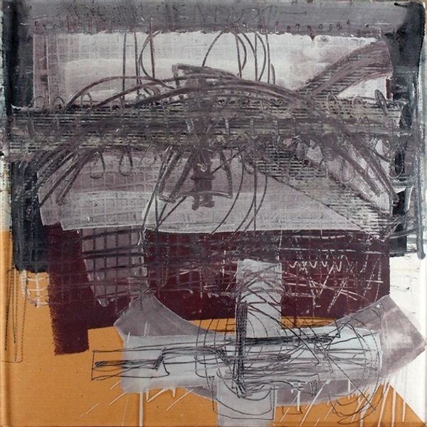 Editor: This is Prunella Clough's "Wire and Demolition", and it's interesting to see these industrial materials contrasted with the texture of the paint. What stands out to you about the way Clough uses materials here? Curator: Well, observe the title. "Wire and Demolition." Clough is drawing our attention to the means of production and the residue of industrial processes. The wire, the very stuff of construction, is presented amidst apparent decay. It's less about pure aesthetics and more about the social and economic realities embedded in these materials. Editor: So, it's not just about how it looks, but what those materials represent in a broader context? Curator: Precisely! Clough challenges the traditional separation between art and the everyday by elevating these overlooked materials. This piece prompts us to reflect on the labor and the systems of consumption that shape our environment. Editor: I see how she’s using materiality to make a statement. Thanks! Curator: My pleasure. It’s rewarding to uncover the stories woven into the very fabric of the artwork.