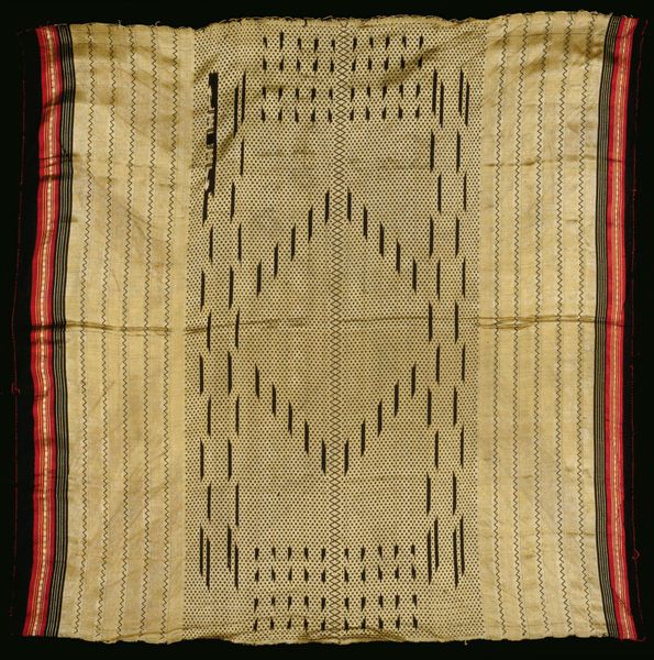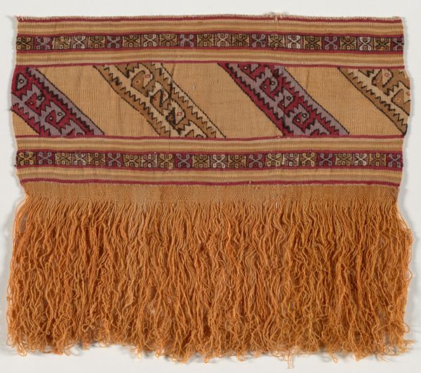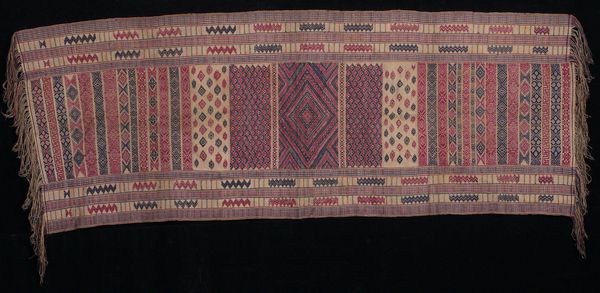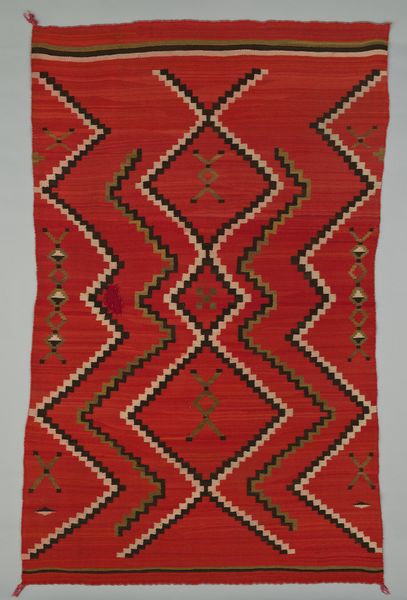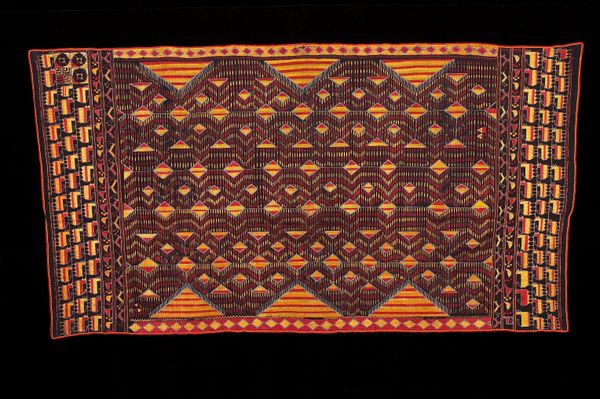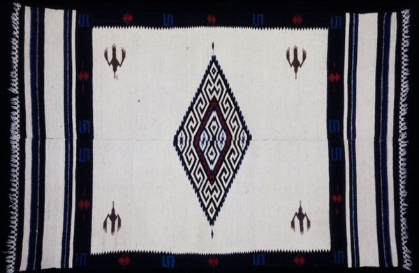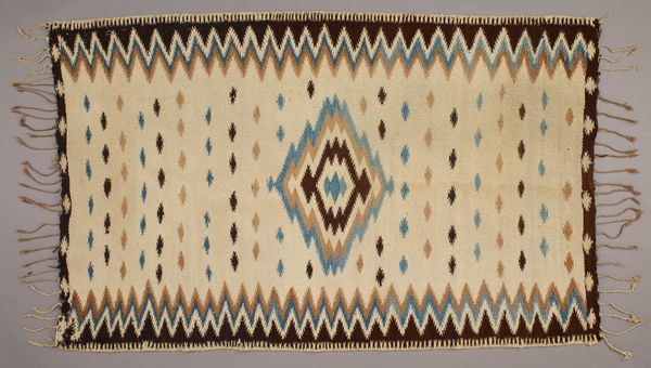 This is a Serape, woven in Saltillo, Mexico. These Saltillo serapes are more than just textiles; they are cultural emblems, embodying the fusion of indigenous weaving traditions with Spanish colonial influences. As you look at this piece, consider the identities and histories interwoven into its threads. The diamond motif, bold colors, and intricate designs speak of a vibrant cultural exchange, but they also hint at the social stratification of the time. The demand for these serapes among the elite fueled local economies, yet the stories of the indigenous artisans who created them are often untold. This serape invites us to reflect on the complexities of cultural exchange, labor, and identity formation in colonial Mexico. It invites us to consider the human hands that poured their skill and experience into its creation.