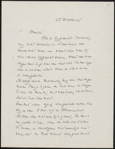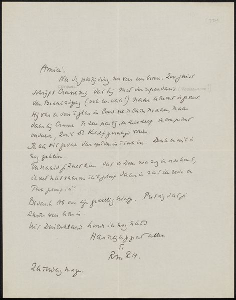 Roland Holst wrote this letter to Willem Bogtman in 1926; it's ink on paper, a simple medium for a complex thought. Look at the way the ink pools and thins, the shaky quality of the lines – you can see the hand, the body, behind the words. The dark marks on the page create a kind of landscape, a topography of thought. Each word is a little gesture, a building block in a larger composition. Notice the looping ascenders and descenders, the way the letters lean and huddle together. There's a real rhythm here, a kind of visual music. It reminds me of Cy Twombly's scribbled paintings, or even some of Paul Klee's more whimsical drawings. Ultimately, art is a conversation, an exchange of ideas across time. Holst's letter is just one voice in that ongoing dialogue, a small but significant contribution to the ever-evolving story of human expression.