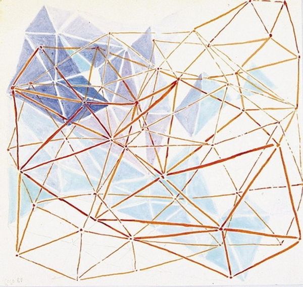 Editor: Lynn Chadwick's "Moon in Alabama," done with some sort of printmaking technique, presents this geometric orb that almost looks like a futuristic satellite. I find it strangely melancholic. What do you make of it? Curator: Melancholy is a good word. The geometry offers a cold, rational structure, yet the textures inside each plane evoke a fragile, almost lunar surface. It reminds me of a fractured dream, or a memory trying to piece itself back together. Do you feel that tension too? Editor: Absolutely. There's this push-pull between the scientific and the ethereal, the planned and the accidental. Curator: Maybe that's the Alabama in it. That longing for something just out of reach. Editor: I never thought of it that way. It gives the piece a whole new dimension. Curator: Exactly! Art is like that moon, always showing a different face depending on where we stand.