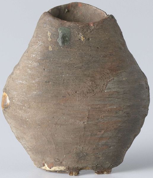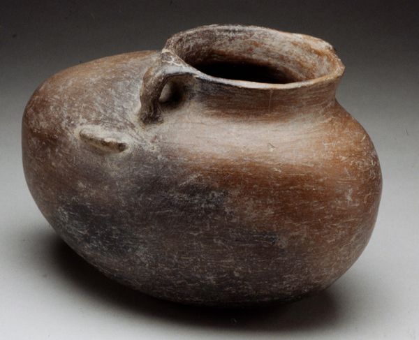 Curator: Here we have a rather humble but captivating object: an Olmec ceremonial drinking vessel, likely crafted around the 13th century, currently residing here at the Minneapolis Institute of Art. Editor: Well, first glance? It looks remarkably…fragile. A thing that's been through something. The material looks earthy but precious, almost like bone. I imagine cupping my hands to drink from it in a ritual long since forgotten. Curator: It's fashioned from earthenware, you see, which would have been sourced directly from the earth, shaped and then fired to harden it. This simple form then carries immense social and spiritual weight. Editor: Earthenware... so, essentially refined mud. How fascinating to elevate something so base, so utterly common, into something sacred. One pictures the maker, the clay, the very landscape being kneaded into meaning. How did they shape this without a wheel? Just hand-built, I assume. Curator: Indeed. Each curve a testament to a knowing hand. Vessels like these weren’t merely functional; they were central to Olmec ceremonies, sharing libations among people, and perhaps between this world and others. The crack is also interesting, don't you think? One has to wonder how it broke and what impact this had. Was it still used ceremonially? Editor: That crack! A rupture in the object, perhaps echoing ruptures in the community, the beliefs. Now it tells its own story: survival, endurance despite damage. Makes you consider the lifespan of the piece, the use, the travels… the consumption of the ruling and labor classes involved. Did the elite use these ceramics or were these used in other lower classed settings? Curator: Absolutely. We tend to elevate the pristine, but maybe it’s the imperfection, the marks of use and time, that make an object truly resonate. Editor: So true. The humblest objects, the barest materials transformed by labor, intent, the spark of… dare I say it… *art*. Thank you for drawing my attention to that. Now I will appreciate how common objects can elevate us as human beings.