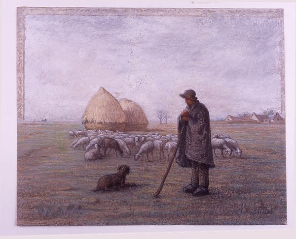 This is Jean-François Millet’s drawing of a peasant woman guiding her cow and sheep, made with pastel and charcoal. The drawing’s composition uses a muted palette and soft, blended strokes. We are confronted with a pastoral scene rendered with a gentle realism, which evokes both tranquility and the quiet dignity of rural labor. Millet was part of the Realist movement, which sought to portray the unvarnished truth of everyday life. In this drawing, the use of earthy tones and the subdued light function to remove any sense of idealization. The woman's figure and the animals are rendered with a certain monumentality. This elevates their status beyond mere genre subjects. The drawing's composition, where the figures are placed close to the foreground, emphasizes their connection to the land, and, in the context of 19th-century social changes, brings attention to the peasant class. The emphasis on form and structure invites us to consider the drawing not only as a depiction of rural life but also as a commentary on social values, suggesting the enduring importance of labor and the land.