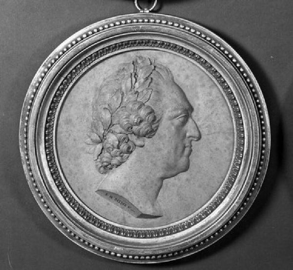 Curator: This medal, dating from between 1672 and 1690, offers us a profile of Michel Le Tellier, the Chancellor of France, created by Nicolas de la Haye. Editor: It’s striking, isn't it? The rigid profile set against the soft curls of his hair gives a sense of formality and hidden depths at the same time. The texture, even in metal, creates a very human effect. Curator: Precisely. Profile portraits like this were particularly favored for their capacity to convey both authority and individuality. They reference the visual language of ancient coinage, linking Le Tellier to a lineage of powerful figures throughout history. It suggests enduring legacy. Editor: It's a visual shorthand, immediately associating him with that long history of power. The inscription encircling his image acts almost like a halo. What else can you tell me about how imagery plays into this work? Curator: Well, the medal itself as an object serves a symbolic function, of course. Often these types of objects are distributed to associates or given as diplomatic gifts, thereby propagating a specific image of Le Tellier and his chancellorship. Every copy reinforces the political idea. Editor: So, it is both a representation and an active participant in crafting a particular socio-political narrative, almost propaganda by portraiture. I find it intriguing how the artist balances the detailed rendering of Le Tellier's face and clothing with the simplified background. There’s almost a flattening effect, as if to prioritize the image over any distracting contextual elements. Curator: That distillation, that very focus on the essential likeness and inscription, contributes to its effectiveness as a symbol. It emphasizes the person and the office above all else, thereby solidifying the power dynamics of the era. Editor: Looking at it now, I see how this small object carries significant weight. More than just an artistic likeness, it served as a potent instrument for reinforcing authority and influencing perceptions of power. Curator: Yes, indeed. It makes you ponder how such seemingly straightforward depictions can be so deeply embedded in the socio-political machinery of their time.