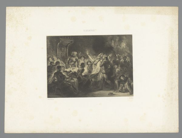 Editor: This is "Mensen vieren vrede," or "People celebrating peace," an engraving by Hendrik Wilhelmus Last, dating from approximately 1847 to 1863. It’s incredibly detailed. The composition is quite active. I'm struck by the dynamism captured in what is essentially a black and white print. What do you make of it? Curator: I note the interplay between light and shadow. The artist utilises chiaroscuro to create depth and dimension. Examine the spatial arrangement: The figures in the foreground command immediate attention, whereas the background, although rendered with similar detail, serves primarily to establish context. The structural relationship between these elements lends to a complex formal structure. Editor: Yes, I see what you mean. It does add layers. It isn’t just the obvious event in the centre; you are pulled towards all parts of the image! What effect do you think Last was trying to achieve using engraving techniques to build depth? Curator: The cross-hatching and precise lines allow for a controlled graduation of tones. Observe how darker areas, achieved through denser line work, contrast against areas of pure white, creating visual tension. One might say this mirrors the emotional complexities inherent in the aftermath of war or the pursuit of peace. It transcends a literal depiction of celebration; it embodies a deeper exploration of contrasts. Editor: That's a fascinating way to put it! Thank you for pointing out all those nuances. I would not have been able to piece all of that by myself! Curator: A close study of artistic vocabulary is very rewarding; my pleasure entirely.