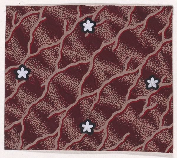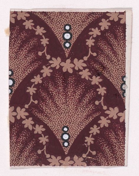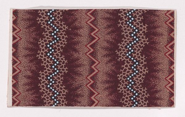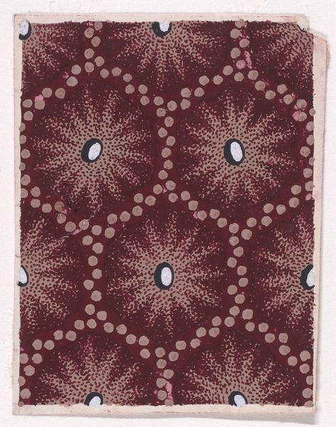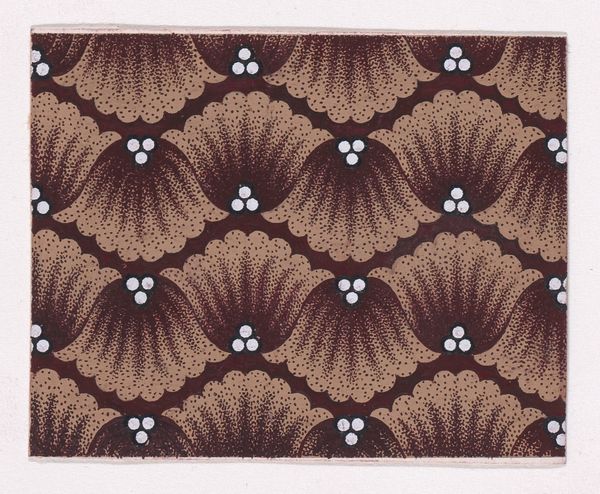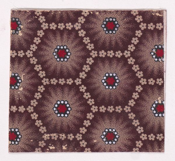 Curator: Oh, I’m immediately drawn to the hypnotic quality of this piece. All those flowers, swirling and blooming... it's mesmerizing! Editor: It’s textile design from 1840; its full title is 'Textile Design with Rosettes Forming Hexagonal Shapes Around Swirls.' This captivating textile, housed here at the Metropolitan Museum of Art, reveals a meticulous attention to geometric and organic motifs. Curator: Hexagonal shapes...yes, I can see it now. I was too caught up in the rhythm of the rosettes, the subtle shifts in color giving each flower a slightly different voice. It’s like they are singing together! Do we know the creator of this particular song? Editor: Sadly, the artist of this striking print is unknown. What fascinates me, though, is the labor involved in crafting a pattern like this. The print likely originates from industrial production. The way it marries geometric precision with seemingly organic, free-flowing forms speaks to broader shifts occurring with production during this period. Curator: That's interesting. So the hands that physically made this could have been following the strict regularity and still inject their sensibility. And I think it still resonates; those little swirls feel almost modern, abstract. Like early explorations into art that’s meant to move you without depicting something explicitly. Editor: I think you are right about its resonance. Mass production means art entered domestic life much easier through things like textiles; we think about their utilitarian nature, but forget their aesthetic function. Consider the anonymous individual purchasing it; what was their life like, their own relationship with design? These questions are part of understanding art’s true life. Curator: Questions that swirl and bloom like these little rosettes. What was once a purely aesthetic admiration has expanded into considering this pattern's origins in a broader context. Now I have more songs to hear! Editor: Yes! When we focus on process, material, and even consumption, these designs are more than just patterns; they reveal much more.