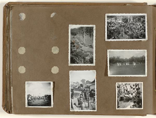 This undated photo album page, titled "Tijdens de zevendaagse patrouille," or “During the seven-day patrol,” provides glimpses into the life and activities of the Dutch East Indies Army. The album page, adorned with black and white photographs, offers a series of snapshots that subtly reveal the power dynamics inherent in colonial rule. We see scenes that evoke a constructed, and perhaps manipulated, version of colonial life: soldiers on patrol, landscapes, local life. The images, while seemingly benign, underscore the control and surveillance inherent in the colonial project. What does it mean to be on a seven-day patrol? What does that do to a landscape and its people? These photos are more than just images. They are fragments of a narrative that speaks to identity, power, and the fraught relationship between colonizer and colonized. They invite us to reflect on the gaze through which history is often recorded and remembered.