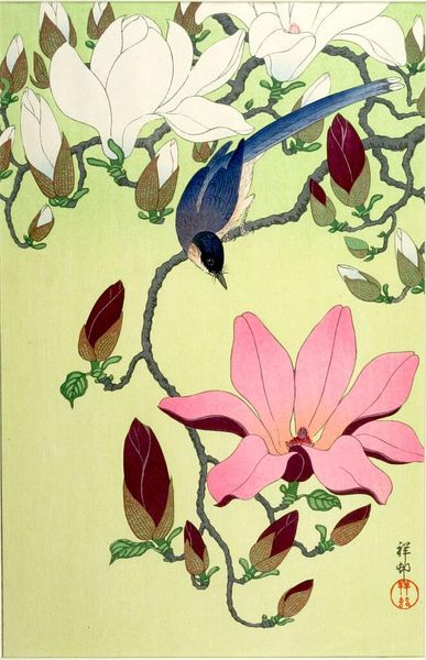 Octavio Ocampo painted this illusionistic artwork titled "Mouth of Flower," where the floral arrangement suggests a human face. At first glance, the composition seems like a study of flowers against a soft, gradient background, but look closer: the negative space and the curves of the leaves and petals artfully construct the profile of a woman. This work exemplifies Ocampo's mastery of metamorphosis, playing with perception and challenging our visual assumptions. The semiotic elements are cleverly intertwined; the rose acts as a sensual mouth, while the leaves shape the nose and brow, destabilizing our perception of natural forms. The composition invites a semiotic reading where nature and human anatomy blur. The subtle gradations of color and light further enhance this dual image. In this way, Ocampo's playful yet thoughtful manipulation of form compels us to consider the fluidity of meaning and the subjective nature of perception.