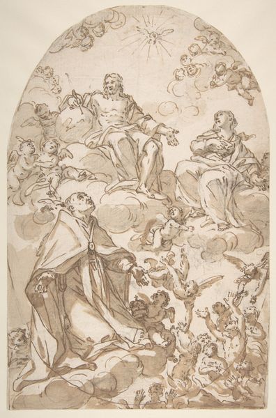 Cosimo Ulivelli made this pen and brown ink drawing, “The Ascension of Saint Francis,” sometime in the 17th century. It shows a saint being lifted into heaven by angels, and exemplifies the relationship between religious institutions and artistic production in the Baroque period. In the 1600s, the Catholic Church was a major patron of the arts. Ulivelli worked in Florence, and his art career benefitted from commissions from the Medici family, who were the Grand Dukes of Tuscany and close allies of the church. In this drawing, the upward movement and dynamic gestures of the figures create a sense of drama. The figures draw the viewer's eye up and towards heaven, in keeping with the Church's teachings. To better understand art like this, we can research the patronage system and study the cultural context in which it was made. In doing so, we can better understand the social conditions that shaped its creation.